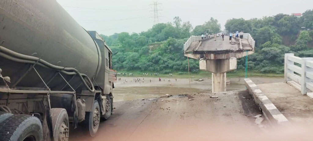 મધ્ય ગુજરાત અને સૌરાષ્ટ્રને જોડતો આ બ્રિજ આણંદ અને વડોદરા જિલ્લાને જોડવામાં પણ મહત્ત્વપૂર્ણ ભૂમિકા ભજવે છે. માહિતી અનુસાર એક ટ્રક, એક બોલેરો અને એક બાઇક સહિત પાંચ વાહનો નદીમાં ખાબક્યા હોવાના અહેવાલ છે. આ મામલે ખુદ કલેક્ટરે ઘટનાની જાણકારી આપી છે. જ્યારે કોંગ્રેસના દિગ્ગજ નેતા અમિત ચાવડાએ પણ એક્સ પર પોસ્ટ કરીને ઘટનાના વીડિયો શેર કર્યા હતા.બ્રિજ ધરાશાયી થઈ જવાને કારણે મોટાપાયે ટ્રાફિક જામની સમસ્યા પણ સર્જાઈ છે. જેને ધ્યાનમાં રાખીને અમિત ચાવડાએ ટ્રાફિકનો નિકાલ લાવવા વૈકલ્પિક વ્યવસ્થા કરવા તંત્રને અપીલ કરી હતી. આ બ્રિજનું નામ ગંભીરા બ્રિજ હોવાની જાણકારી મળી છે. નદીમાં ખાબકેલા વાહનો પાસે એક મહિલા મદદ માટે કરગરતી દેખાઈ હતી. જરાત વિધાનસભા કોંગ્રેસ પક્ષના નેતા અને આકલાવના ધારાસભ્ય ચાવડા દ્વારા આપવામાં આવેલી માહિતી મુજબ આ બ્રિજ આણંદ અને વડોદરા જિલ્લાને કનેક્ટ કરે છે અને આ બ્રિજની હદ વડોદરા જિલ્લામાં આવતી હોવાથી તંત્રએ કામગીરી હાથમાં લીધી છે. તેમણે જણાવ્યું કે બ્રિજ તૂટવાની ઘટના બાબતે પોલીસને જાણકારી આપી દેવામાં આવતી હતી. હાલ બ્રિજ તૂટવાના કારણે પાંચ જેટલા વાહનો નદીમાં પડ્યા છે અને એક ટ્રક લટકતી છે. બંનેની જાણ કરી દેવામાં આવી છે. આ બ્રિજ મહિસાગર નદી પર આવેલો છે. તેનું નિર્માણ 1985માં પૂર્ણ કરાયું હતું. બ્રિજ ધરાશાયી થતાં જ માર્ગ નિર્માણ વિભાગની ગંભીર બેદરકારીની પોલ ખુલી ગઈ છે કેમ કે સરકારે નવો બ્રિજ બનાવવા મંજૂરી આપી હતી અને નવા બ્રિજ માટે સરવે પણ હાથ ધરાયો હતો પરંતુ આ બ્રિજની હાલત જર્જરિત થઈ ગઈ હોવા છતાં તેને બંધ નહોતો કરાયો. સ્થાનિકોએ આરોપ મૂક્યો કે આણંદ અને વડોદરા જિલ્લાને જોડતો ગંભીરા બ્રિજ ભાજપના શાસનમાં જાળવણીના અભાવે તૂટી પડ્યો. ગુજરાત માર્ગ અને મકાન વિભાગની 25 વર્ષના આયુષ્ય અવધિ સાથે બનાવેલો બ્રિજ આજે 45 વર્ષે તૂટી પડે અને લોકો મોતને ભેટે એની રાહ જોતી ભ્રષ્ટાચારમાં લિપ્ત ભાજપ સરકારને કુદરતનો વધુ એક તમાચો છે. ઘટનાસ્થળેથી સામે આવેલા દૃશ્યો અનુસાર સ્થાનિકોએ બચાવ કામગીરી શરુ કરી દીધી છે. ફાયરબ્રિગેડની ટીમ પણ આવી પહોંચી છે. આ મામલે અમિત ચાવડાએ તંત્રને ઘેરતાં અનેક સવાલો પણ ઊઠાવ્યા હતા. બે પિકઅપ વાન, એક ઈકો, ટુ વ્હિલર અને ટ્રક નદીમાં ખાબક્યા હતા.