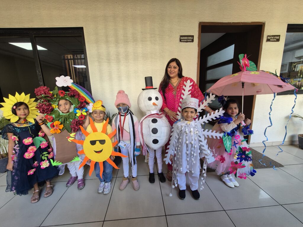 જેમાં નાનકડા વિદ્યાર્થીોએ ઉનાળો, ચોમાસું, શિયાળો અને વસંત—ચારેય ઋતુઓને સર્જનાત્મક રીતે રજૂ કરી અનોખું પ્રદર્શન કર્યું હતું.
