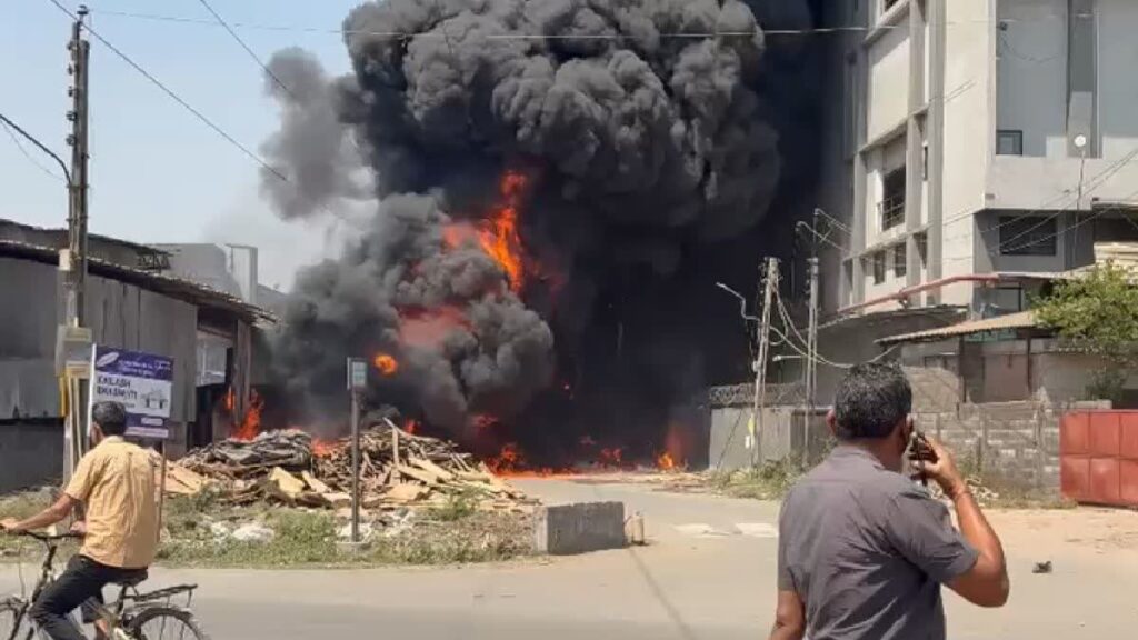 સુરતના ઔદ્યોગિક વિસ્તાર ગણાતા સચિનના હોજીવાલા કમ્પાઉન્ડમાં આજે એક નામાંકિત કેમિકલ કંપનીમાં અચાનક ભીષણ આગ ફાટી નીકળતા સમગ્ર વિસ્તારમાં અફરાતફરીનો માહોલ સર્જાયો હતો. આગની તીવ્રતા એટલી ભયાનક હતી કે જોતજોતામાં તેણે આખી કંપનીને લપેટમાં લઈ લીધી હતી પ્રાથમિક અહેવાલો મુજબ, કેમિકલના ડ્રમ્સમાં આગ લાગવાને કારણે કંપનીમાં એક પછી એક 30થી વધુ પ્રચંડ વિસ્ફોટો થયા હતા. આ વિસ્ફોટોનો અવાજ એટલો તીવ્ર હતો કે આસપાસની અન્ય કંપનીઓમાં કામ કરતા શ્રમિકો ભયના માર્યા બહાર દોડી આવ્યા હતા. આકાશમાં કાળા ડિબાંગ ધુમાડાના ગોટેગોટા કિલોમીટરો દૂરથી જોઈ શકાતા હતા.ઘટનાની જાણ થતા જ સુરત ફાયર વિભાગની અનેક ગાડીઓ તાત્કાલિક ઘટનાસ્થળે દોડી ગઈ હતી. કેમિકલ આગ હોવાને કારણે ફાયરના જવાનોએ ફોમ અને પાણીના મારો ચલાવી આગને કાબૂમાં લેવાની કામગીરી હાથ ધરી છે. આસપાસની અન્ય ફેક્ટરીઓમાં આગ ન પ્રસરે તે માટે સાવચેતીના પગલાં રૂપે પાવર સપ્લાય પણ કાપી દેવામાં આવ્યો હતો. રાહતની વાત એ છે કે, અત્યાર સુધીના અહેવાલો મુજબ આ દુર્ઘટનામાં કોઈ જાનહાનિના સમાચાર પ્રાપ્ત થયા નથી. આગ લાગવાનું ચોક્કસ કારણ હજુ જાણી શકાયું નથી, પરંતુ શોર્ટ સર્કિટ અથવા કેમિકલ રિએક્શન હોવાની આશંકા સેવાઈ રહી છે. હાલમાં ફાયર વિભાગ દ્વારા કુલિંગની કામગીરી ચાલુ છે.