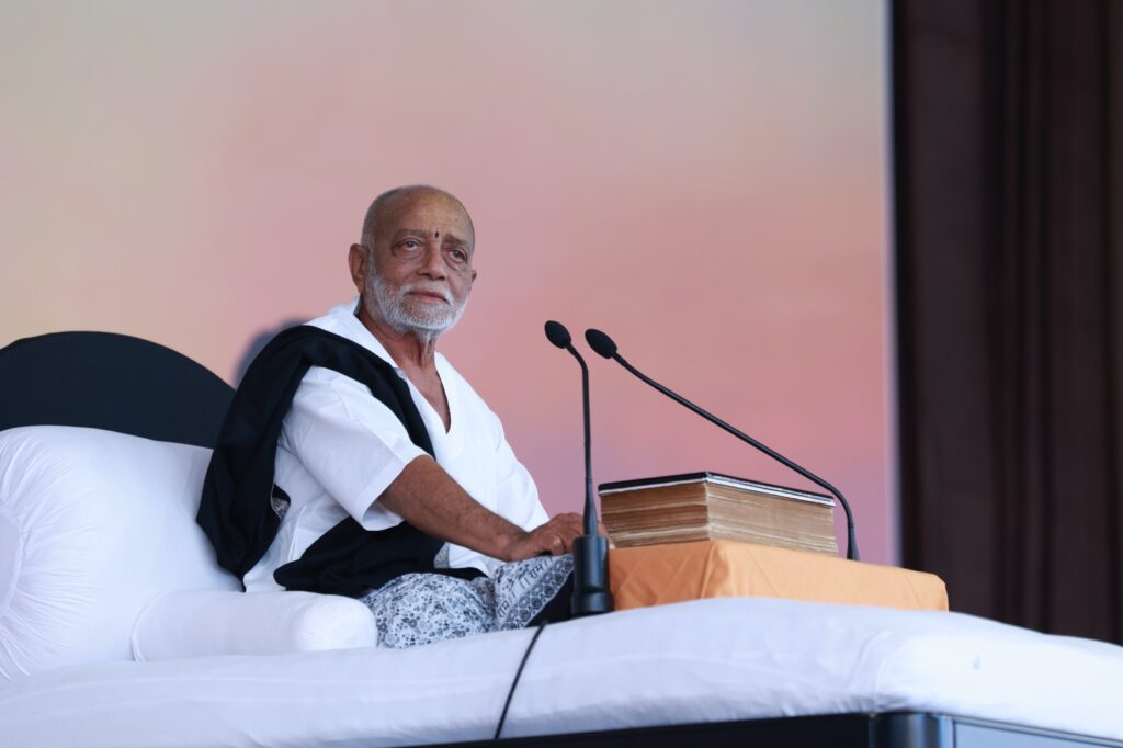 દ્વારકાધીશની પાવન ભૂમિ પર પાંચમા દિવસના કથા સંવાદનો આરંભ કરતા પૂજ્ય બાપુએ એક પ્રશ્ર્નના સમાધાનમાં કહ્યું કે શ્રીમદ ભાગવતજીમાં ચતુશ્લોકીનું બહુ મહત્વ છે. રામચરિત માનસમાં ચતુર્લોકી છે! ચોપાઇ,છંદ, સોરઠા અને દોહા એ રામાયણની ચતુર્લોકી છે. બાપુએ કહ્યું કે રામાયણમાં ચાર સંવાદ પણ રામાયણની ચતુશ્લોકી -ચતુર્લોકી છે.આમ તો આપણી સંસ્કૃતિમાં ચાર વેદ, ચાર યુગ, ચાર પુરુષાર્થ, ચાર ફળ, જીવની ચાર અવસ્થા, ગીતાના ન્યાયે ભક્તના ચારપ્રકાર આદિ ચાર ચારનો મહિમા છે. પરંતુ રામચરિત માનસના ચાર સંવાદ, એ રામાયણની ચતુશ્લોકી છે. મહાદેવ મહાદેવીનેmસાથે સંવાદ કરે છે, યાજ્ઞવલ્ક્યજી ભારદ્વાજજી સાથે, કાકભુસંડીજી શિવજી સાથે અને ગરુડજી સાથે સંવાદ કરે છે તેમ જતુલસીદાસજી પોતાના મન સાથે સંવાદ કરે છે.મહાભારતમાં સંવાદને સત્યનો પર્યાય કહ્યો છે.મહાભારતમાં દાદા ભીષ્મે તેર બાબતને સત્યના પર્યાય તરીકે વર્ણવી છે. કોઇની નિંદા ન કરવી એ સત્યનો પર્યાય છે. સ્પર્ધા નકરવી, ક્ષમા આપવી, શ્રદ્ધા, સંવેદના, અકૃત, નિષ્કપટતા આદિ સત્યના પર્યાય છે.બાપુએ કહ્યું કે શાસ્ત્ર કે સદ્ગુરુ આપણને સંકેત કરે, પણ ચાલવું તો આપણે જ પડે છે. બિમારી ઠીક કરવા ડૉક્ટર નિદાન કરીનેદવા ચીંધે પણ દર્દીએ જ દવા તો ખાવી પડે છે.પરમાત્મા આપણી સાથે જ છે પરંતુ એની મરજી પ્રમાણે આપણે ય કૈંક કરવું પડે છે. જગતગુરુ ભગવાન શંકરાચાર્ય તો કહે છે કેગુરુ પાસેથી તને પ્રજ્ઞા પ્રાપ્ત થઈ હોય તો તું જાતે તર. એ તને તરવાનો માર્ગ બતાવશે પણ તરવુ તો તારે જ પડશે."આ સંદર્ભે બાપુએ કહ્યું કે જગતગુરુ તો જગતગુરુ છે પણ આપણી એ કક્ષા નથી. આપણે તો એમ કહી શકીએ કેહે સદ્ગુરુ! તમે રે તારો તો અમે તરીએ….! વિભીષણ પાસે સિતાજી (ભક્તિ) સુધી પહોંચવાની બધી જ યુક્તિ છે, છતાં એ પોતે કદી એના સુધી પહોંચી શકતો નથી. જ્યારેશ્રી હનુમાનજીના મુખે રામકથા સાંભળે છે એ પછી તે હનુમાનજીને સિતા સુધી પહોંચવાની યુક્તિ બતાવે છે અને એ રીતેહનુમાનજી સિતાજી સુધી પહોંચે છે. બાપુએ કહ્યું કે એટલા માટે જ સહુએ કથા સાંભળવી જોઈએ. કથા સાંભળી ન શકો તોસાંભળનારને અનુમોદન આપો.ઉપનિષદના સંદર્ભમાં શ્રી કૃષ્ણને બ્રહ્મ તરીકે પ્રસ્થાપિત કરતા પૂજ્ય બાપુએ કહ્યું કે બ્રહ્મ તો એક જ છે પણ ઉપનિષદે કૃષ્ણનાપાંચ બ્રહ્મ સ્વરુપો વર્ણવ્યા છે. એક – અન્નમ્ બ્રહ્મેતિ વ્યજાનાત્ . અન્ન બ્રહ્મ છે. અન્ન કૃષ્ણનું સ્વરુપ છે. અન્નને બ્રહ્મ જાણ. અન્નની નિંદા ન કર. અન્ન રૂપે કૃષ્ણ આપણો આહાર છે. જલારામ બાપાએ રોટલામાં રામને જોયા. એ રોટલાએ બહુ મોટી ક્રાંતિ કરી છે. અન્નની આવી ઉપાસના થતી હોય, ત્યાં બ્રહ્મે બ્રાહ્મણનું રૂપ લઇને આવવું પડે છે! ઉપનિષદનું બીજું સૂત્ર છે – મનો બ્રહ્મેતિ વ્યજાનાત્મ ન બ્રહ્મ છે. કૃષ્ણ ગીતામાં કહે છે કે ઇન્દ્રિયોમાં મન મારી વિભુતિ છે. ત્રીજું સૂત્