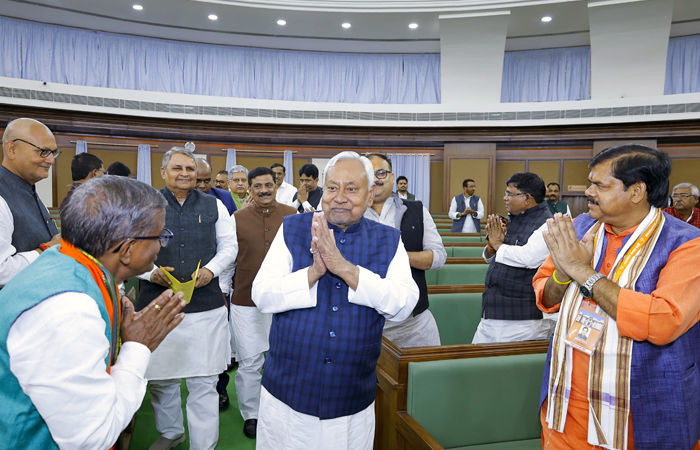 બિહારમાં 19 નવેમ્બર, બુધવારે યોજાયેલી NDAની બેઠક પછી નીતિશ કુમારે રાજ્યપાલ આરિફ મોહમ્મદ ખાનને મુખ્યમંત્રી તરીકે રાજીનામું સોંપી દીધું હતું. આ સાથે નીતિશ કુમારે બિહારમાં નવી સરકાર રચવાનો દાવો રજૂ કર્યો હતો. આ પહેલા એનડીએની બેઠકમાં ધારાસભ્ય દળના નેતા તરીકે પણ નીતિશ કુમારની પસંદગી થઈ હતી. સમ્રાટ ચૌધરીએ ભાજપના ધારાસભ્ય દળના નેતા તરીકે નીતિશ કુમારના નામનો પ્રસ્તાવ રજૂ કર્યો હતો, જેને એનડીએના સભ્યોએ સર્વસંમતિથી મંજૂરી આપી હતી. હવે આવતીકાલે 20 નવેમ્બરે સવારે 11:30 વાગ્યે ગાંધી મેદાનમાં મુખ્યમંત્રી સહિત મંત્રીમંડળના સભ્યોનો શપથગ્રહણ સમારોહ યોજાશે. મુખ્યમંત્રી તરીકે નીતિશ કુમાર 10મી વખત બિહારની બાગડોર સંભાળશે.નીતિશ કુમારને NDA ધારાસભ્ય દળની બેઠકમાં નેતા પસંદ કરાયા છે. તેઓ 10મી વખત બિહારના મુખ્યમંત્રી તરીકે શપથ લેશે. પટણાના ગાંધી મેદાનમાં ગુરૂવારે (20 નવેમ્બર) શપથગ્રહણ સમારોહનું આયોજન કરાઈ રહ્યું છે. જેને લઈને જોર-શોરથી તૈયારીઓ કરાઈ રહી છે. જણાવી દઈએ કે, બિહાર વિધાનસભા ચૂંટણીમાં NDAએ શાનદાર પ્રદર્શન કરતા 202 બેઠકો જીતવામાં સફળતા હાંસલ કરી છે. ભાજપ 89 બેઠકો જીતીને રાજ્યમાં સૌથી મોટી પાર્ટી બની ગઈ છે. જ્યારે નીતિશ કુમારની પાર્ટી JDUએ 85 બેઠકો જીતી છે અને બીજા નંબરે રહી છે. આ સાથે ચિરાગ પાસવાનની પાર્ટી LJPએ 5 બેઠકો પર જીત મેળવી છે. બીજી તરફ મહાગઠબંધનની ખરાબ રીતે હાર થઈ અને 35 બેઠકો પર જ સમેટાઈ ગઈ.નીતિશ કુમારની NDA ધારાસભ્ય દળની બેઠકમાં નેતા તરીકે પસંદગી કરવામાં આવી છે. સમ્રાટ ચૌધરીએ નીતિશ કુમારના નામનો પ્રસ્તાવ રાખ્યો હતો. નીતિશ કુમાર 10મી વખત બિહારના મુખ્યમંત્રી તરીકે શપથ લેશે. આવતીકાલે શપથગ્રહણ સમારોહ યોજાશે.